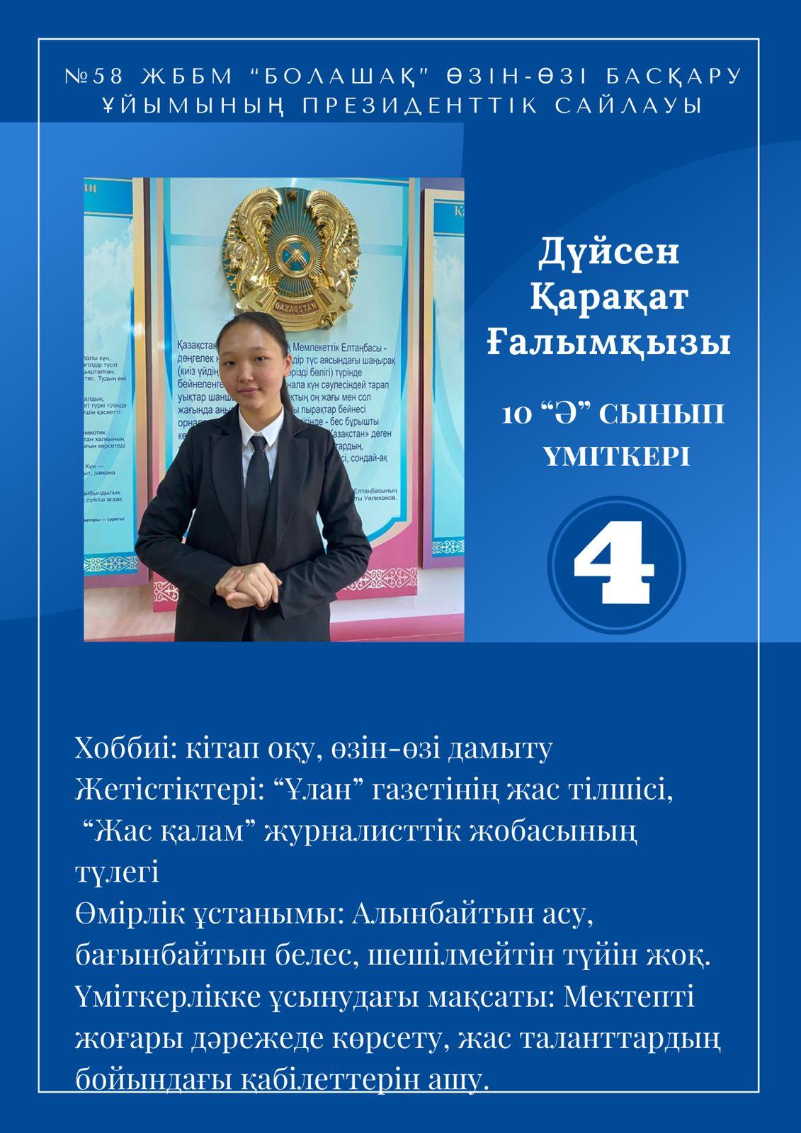 Осы мақсатта, 2021-2022 оқу жылының мектеп президентіне 9-10 сыныптардан үміткерлер ұсынылып отыр.