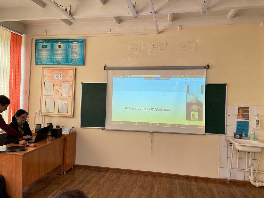 2021 жылдың 05. қазан күні №58 Жалпы білім беретін мектептің ұжымымен «Назарбаев зияткерлік мектептері» ДББҰ жанындағы Педагогикалық шеберлік орталығында аға менеджері. Филология ғылымдарының кандидаты, доценті Алимов Асхат Хамзатұлы «Сабақты зерттеу қадамдары» атты тақырыпта вебинар өткізді. Вебинарда пән мұғалімдерін толғандырып жүрген сұрақтарға , жауабын алды.