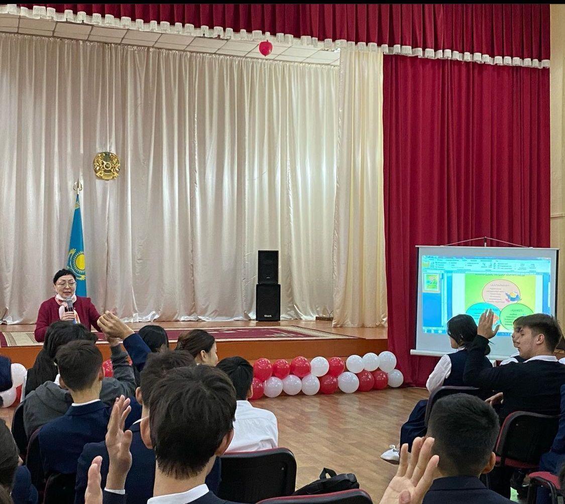Осыған орай мектебімізде қалалық жастарды жұмыспен қамту орталығының бас маманы Еркеш Садыковнамен 9-11сынып оқушыларымен кездесу өтті.