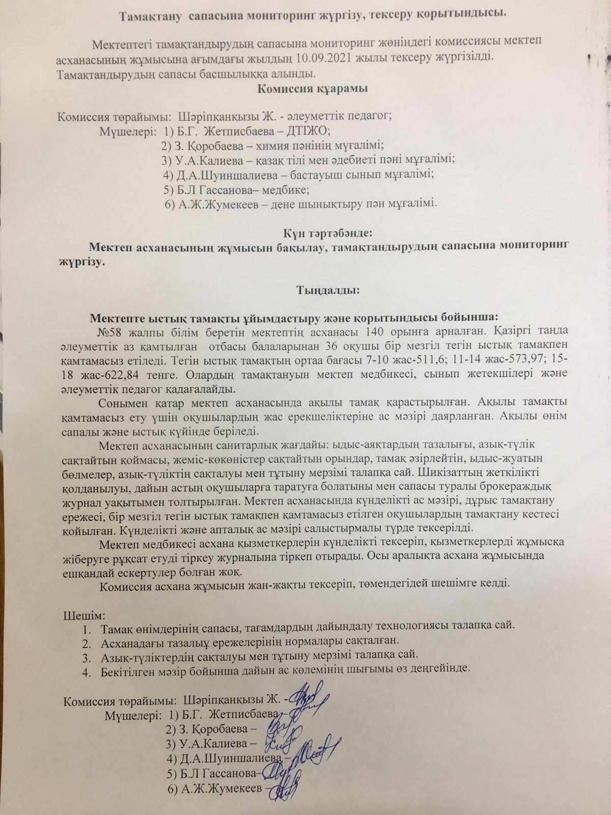 ТАМАҚТАНДЫРУДЫҢ САПАЛЫҚ МОНИТОРИНГІ