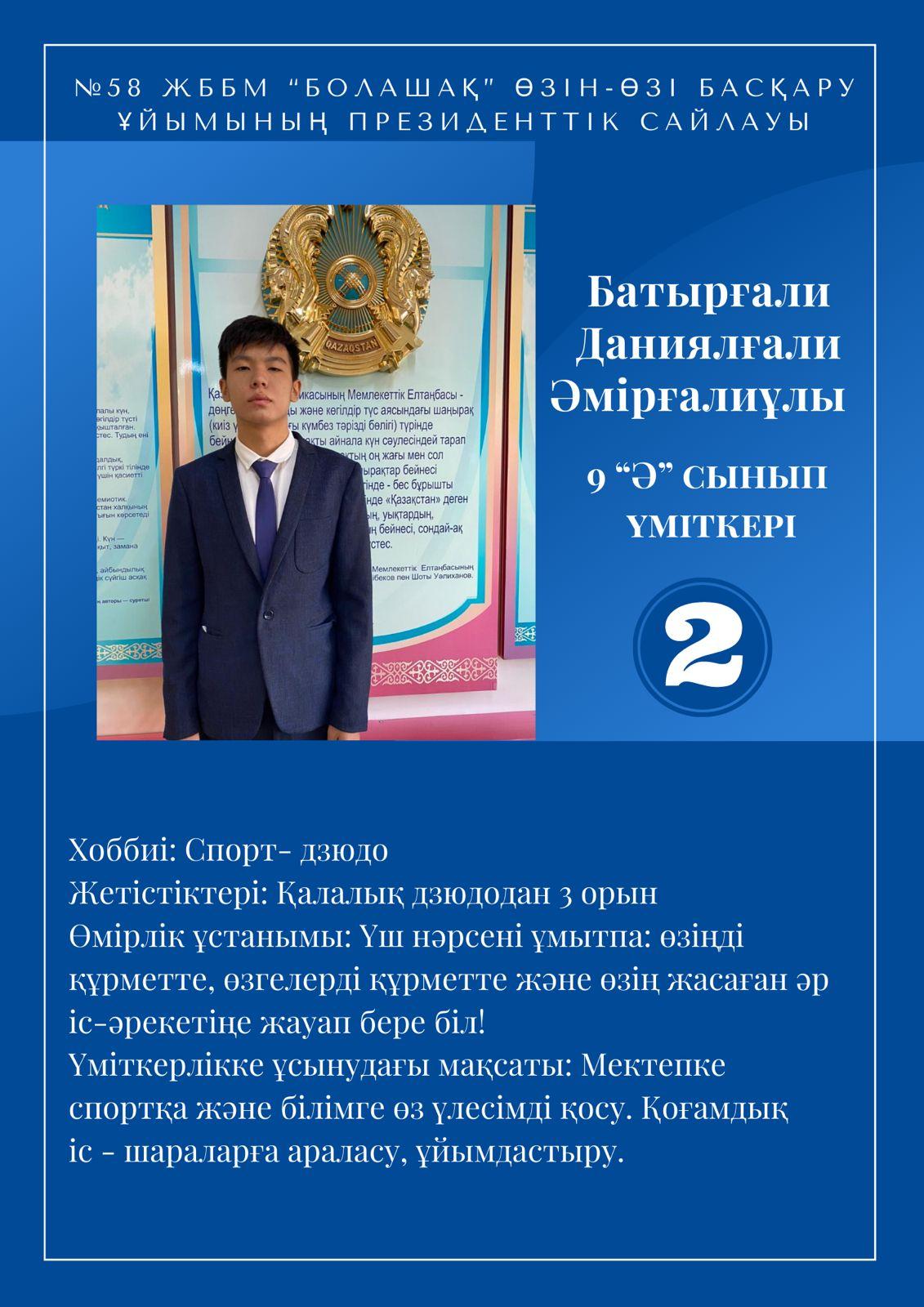 Осы мақсатта, 2021-2022 оқу жылының мектеп президентіне 9-10 сыныптардан үміткерлер ұсынылып отыр.