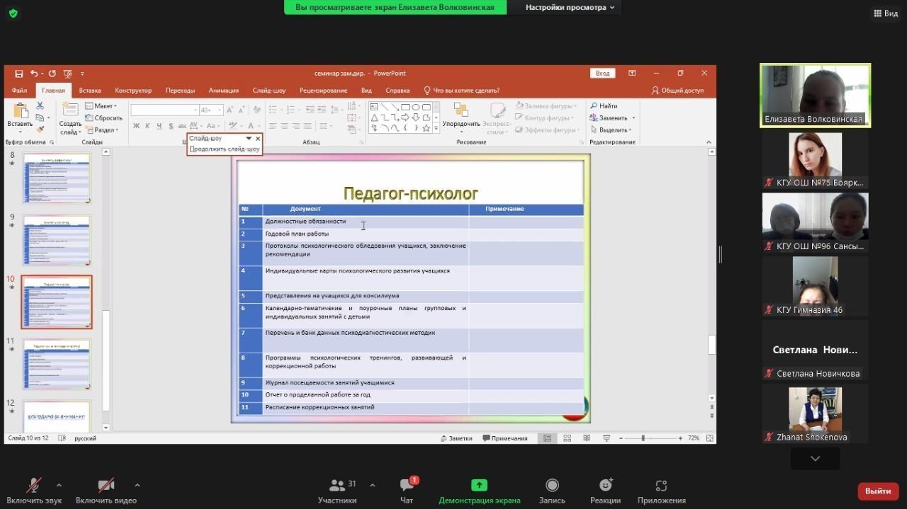 «Психологиялық -педагогикалық қолдау қызметі мамандарының құжаттамасы» аймақтық семинары.