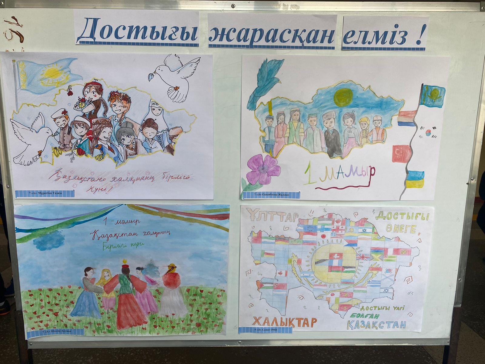 Қазақстан халықтарының достығы күні қарсаңында мектеп қабырғасындағы қылқалам шеберлері "Достығы жарасқан елміз" тақырыбының аясында сурет көрмесін ұйымдастырды. Көрмеге 7-10 сынып оқушылары ерікті түрде қатысты.