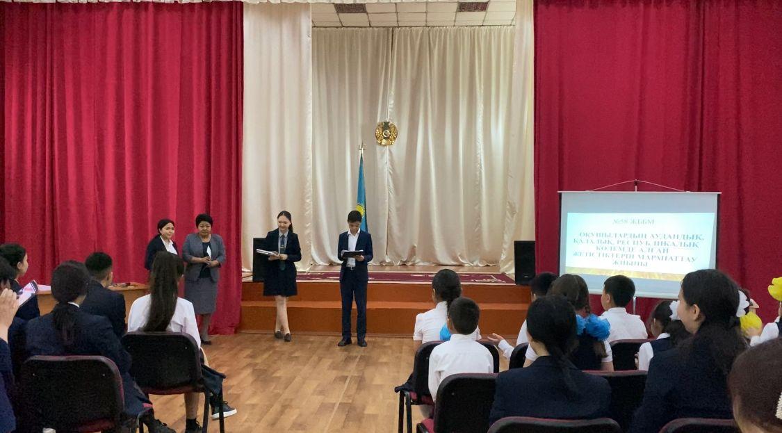 19 май 2022 0 1 2 3 4 5 Оқушыларды салтанатты түрде құттықтау жиыны өткізілді ! Мектебімізде 2021-2022 оқу жылында аудандық, қалалық, республикалық байқаулардан жүлделі орын алған оқушыларды салтанатты түрде құттықтау жиыны өткізілді !