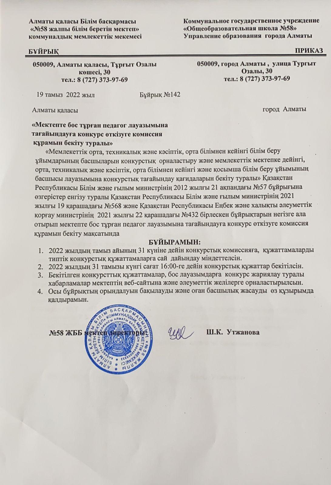 19 август 2022 0 1 2 3 4 5 «Мектепте бос тұрған педагог лауазымына тағайындауға конкурс өткізуге комиссия құрамын бекіту туралы»