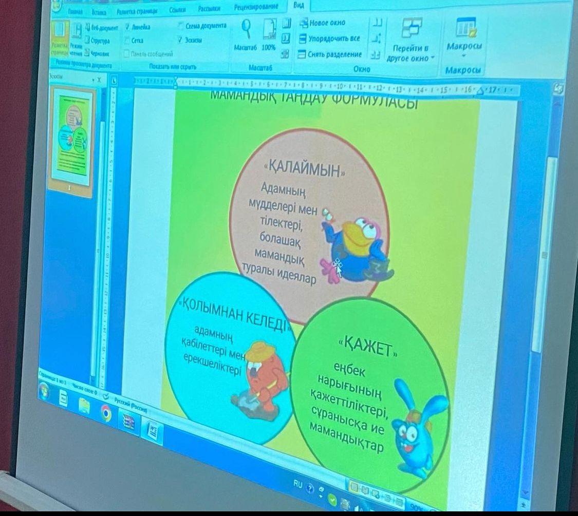 Осыған орай мектебімізде қалалық жастарды жұмыспен қамту орталығының бас маманы Еркеш Садыковнамен 9-11сынып оқушыларымен кездесу өтті.