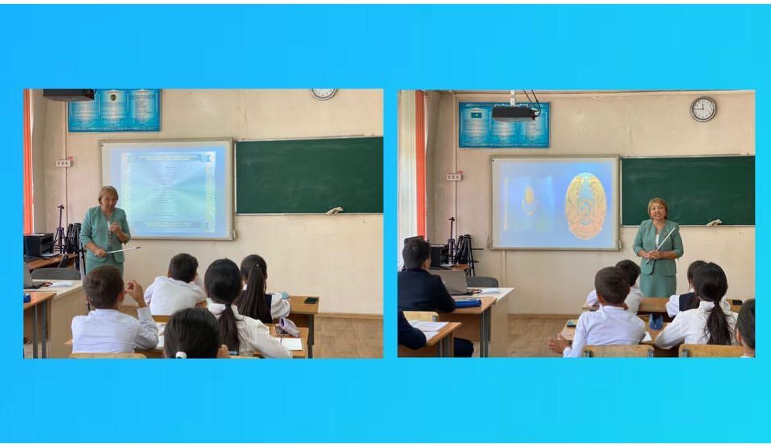 Мектебімізде 5 «Ә» сыныбында «Қазақстан Республикасының Мемлекеттік рәміздерінің қабылданғанына 30 жыл»тақырыбында сынып сағаты өтілді.