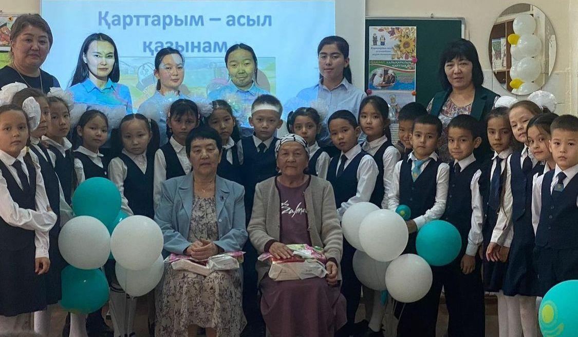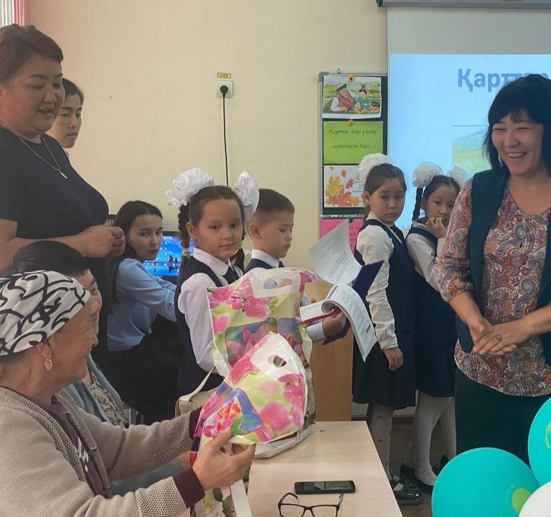 Қарттар күні аясында мектебімізде өткен сыныптан тыс іс шараға зейнетке шыққан ұстаз апаларымызды қонаққа шақырып, кездесу ұйымдастырылды. Оқушылар өз өнерлерін көрсетті. Кездесуге келген апалар балаларға баталарын беріп, ақылдарын айтты.