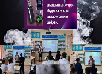 2023 жылдың 14 сәуір күні 5 сынып оқушыларымен «Вейпинг» тақырыбында психологиялық дәріс-сабақ өткізілді.