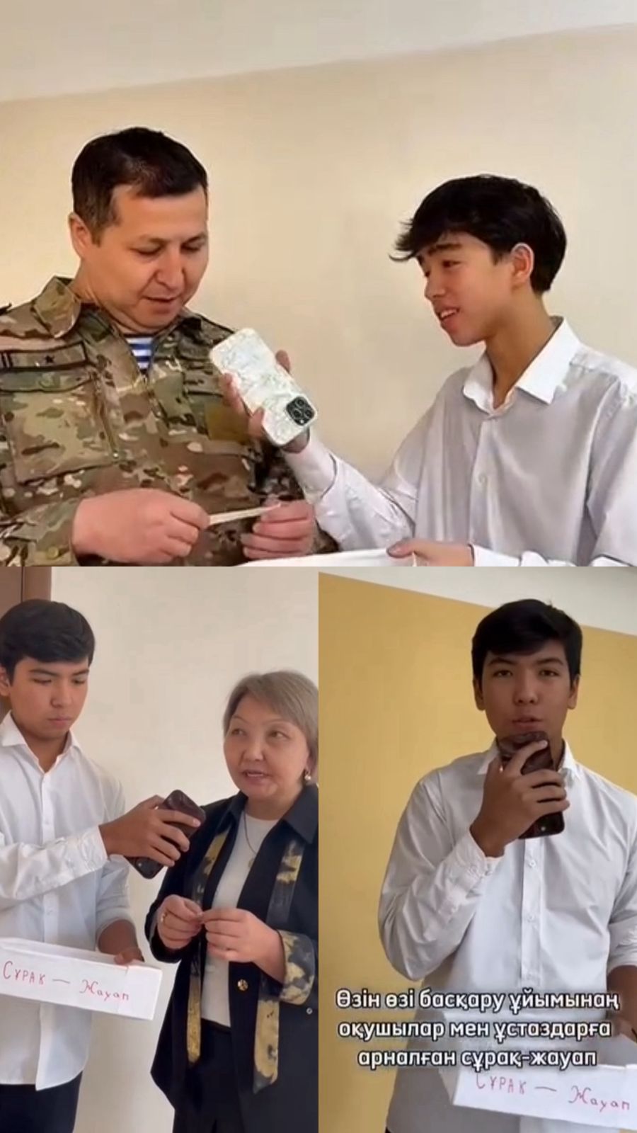 Өзін-өзі басқару ұйымының ұйымдастыруымен “Бірлігі күшті ел озады”тақырыбында ұстаздар мен оқушыларға сұрақ қойып,апта дәйек сөздерін дәріптеді.