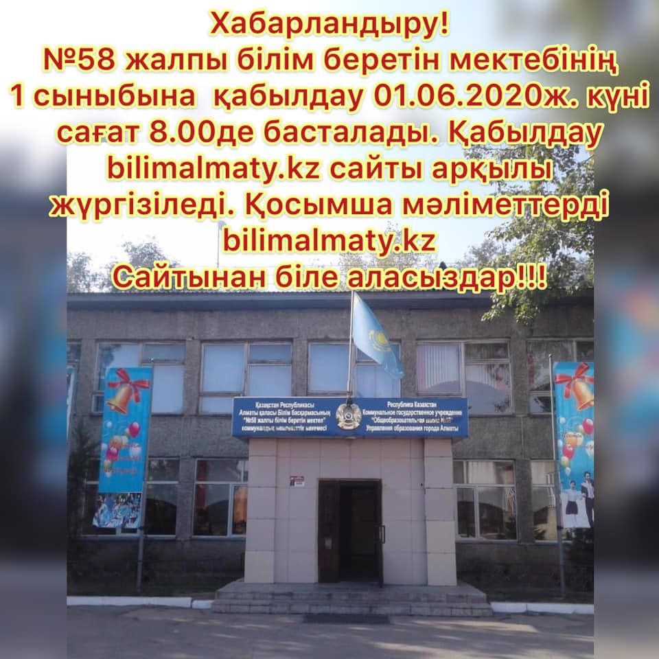 1 сыныпқа құжаттарды қабылдау 1 маусым мен 1 тамыз аралығында іске асырылады. Өтінішті bilimalmaty.kz сайты арқылы беруге болады.