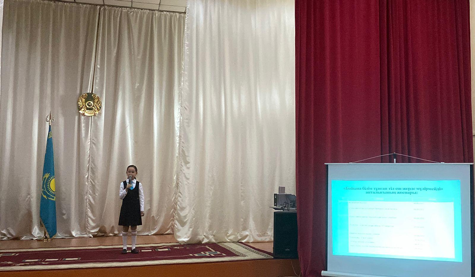 Мектебімізде ҚР Тілдер күні мерекесіне орай қазақ, орыс, ағылшын тілі және бастауыш сынып мұғалімдерінің ұйымдастыруымен “Бойына білім тұнған ел еш жерде мүдірмейді” атты тілдер апталығының салтанатты түрде ашылу жиыны болды. Жиын барысында мектеп оқушылары әр тілде өз өнерлерімен бөлісті. Ұйымдастырушылар апталықтың бекітілген жоспарын таныстырып, алдағы болатын іс-шараларға оқушыларды белсене қатысуға шақырды!