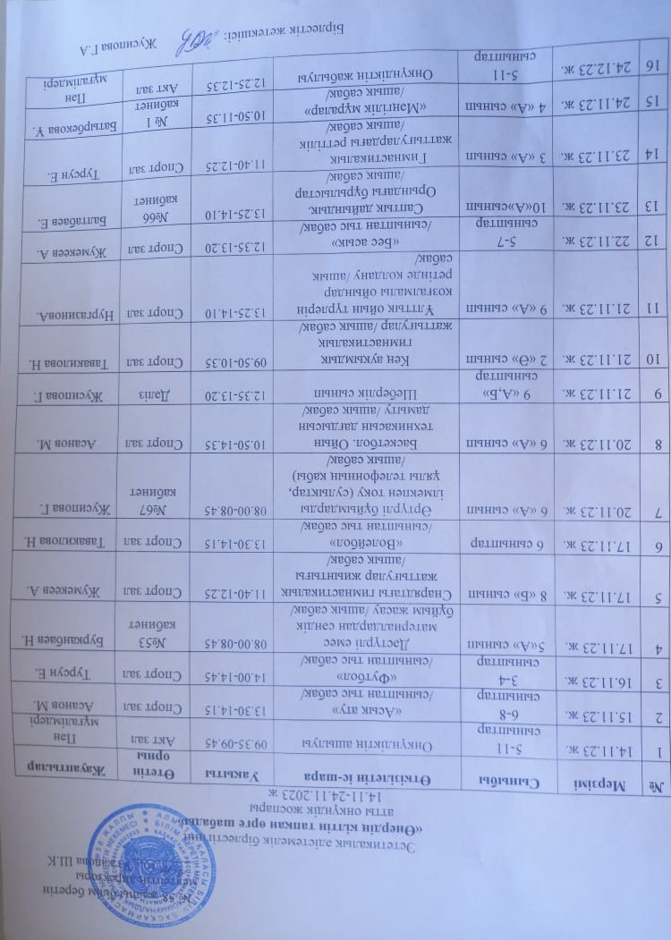 13 ноябрь 2023 0 1 2 3 4 5 Эстетикалық әдістемелік бірлестігінің "Өнердің кілтін тапқан өрге шабады " атты онкүндік жоспары