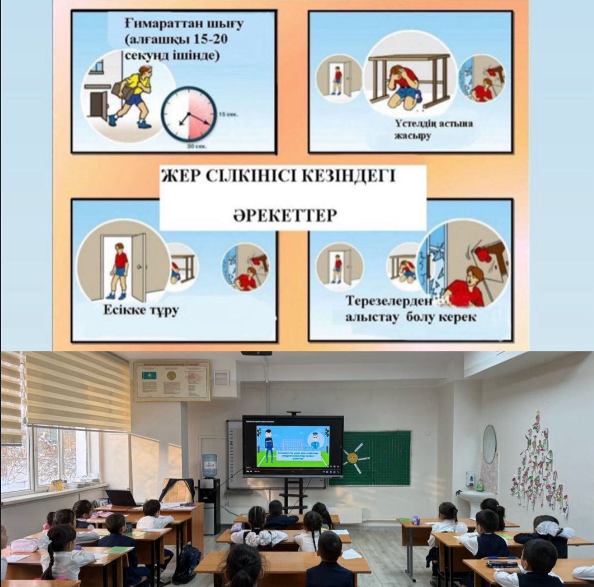 Сондай-ақ, жер сілкінісі кезінде қолдануға болатын қауіпсіздік ережелерімен танысты.