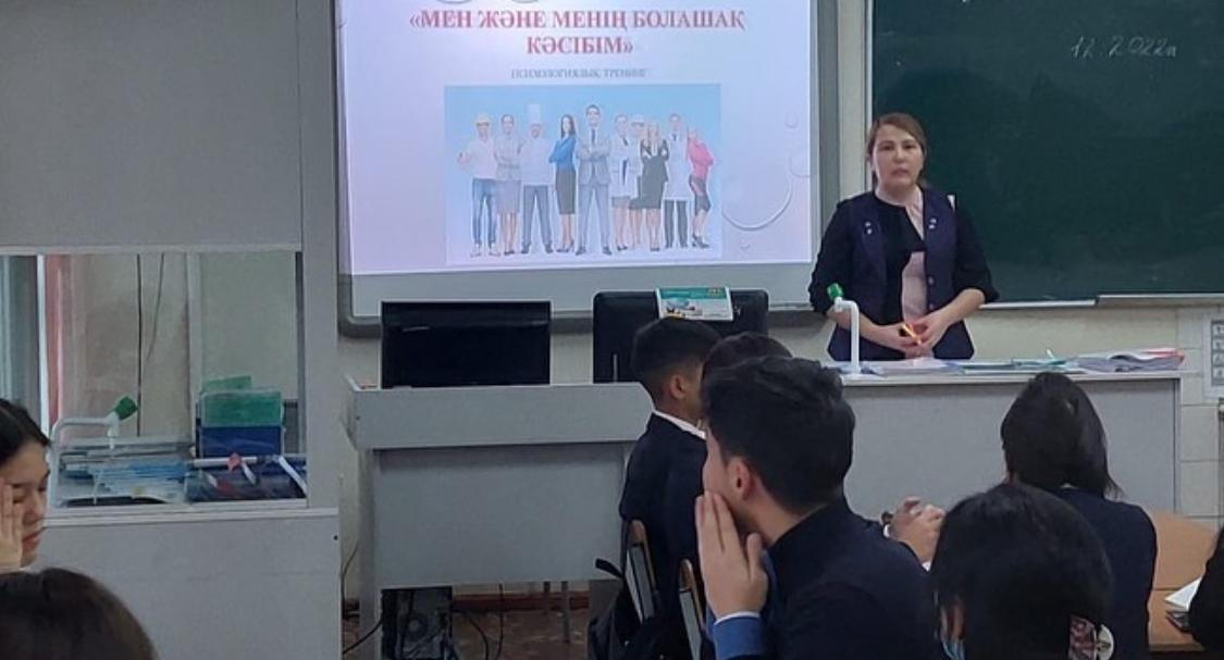 2022 жылдың 20 желтоқсан күні 10 сынып оқушыларымен «Мен және менің болашақ кәсібім» » тақырыбында психологиялық тренинг өтті.