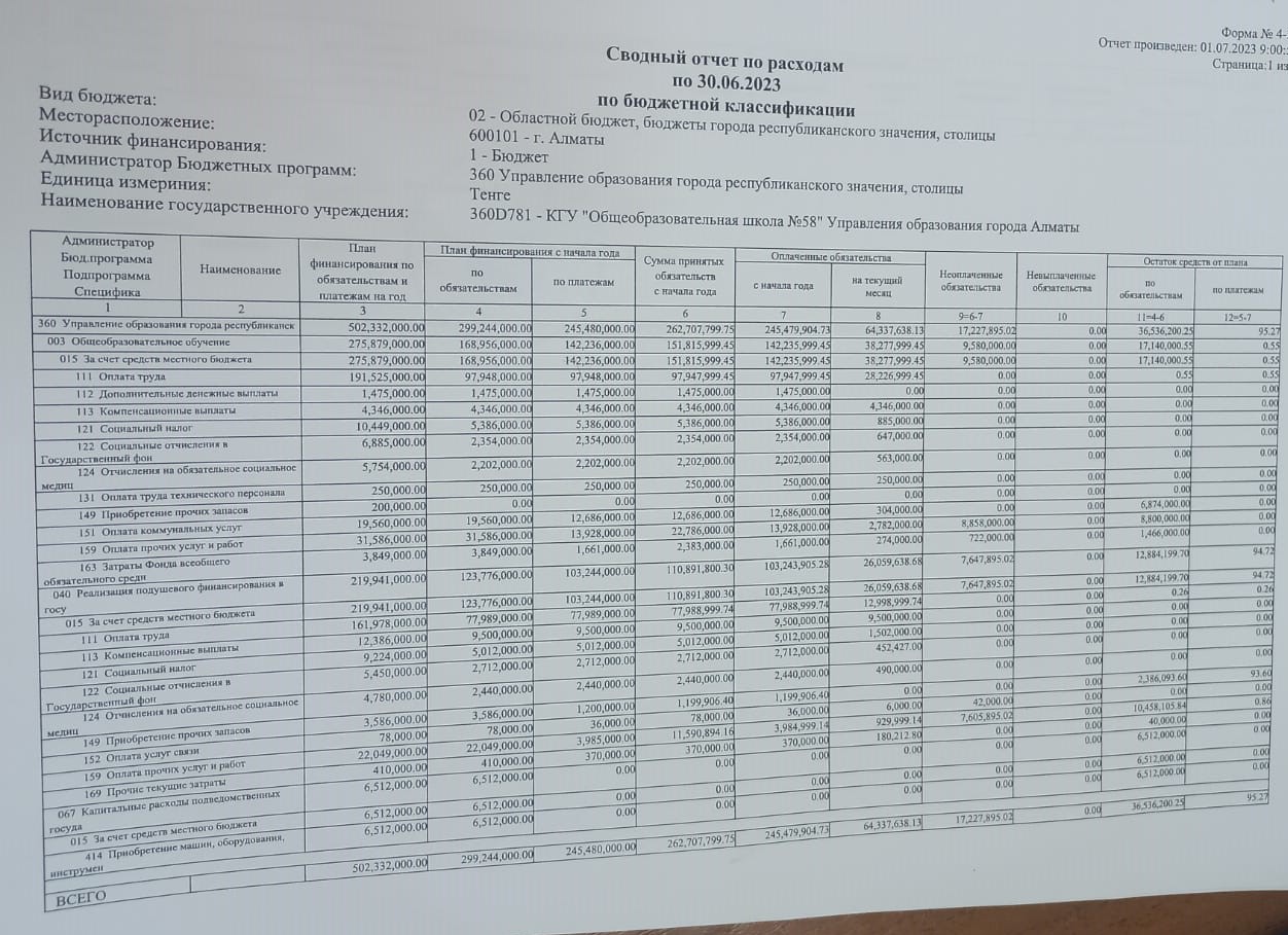 КГУ «Общеобразовательная школа №58» Управления образования г.Алматы