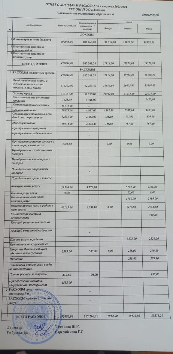 КГУ «Общеобразовательная школа №58» Управления образования г.Алматы