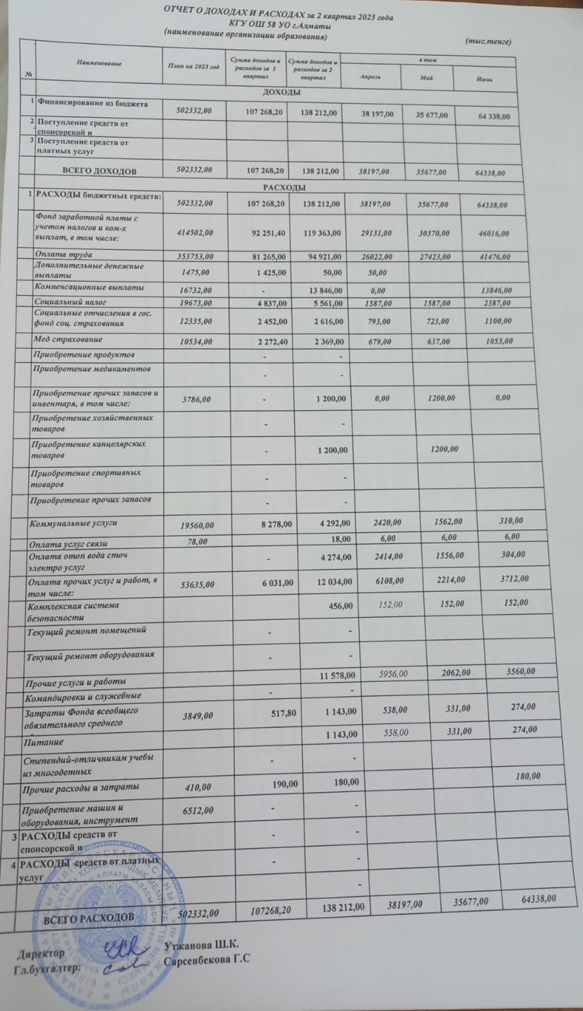 Кіріс және шығыс есебі 2 квартал 2023 жыл