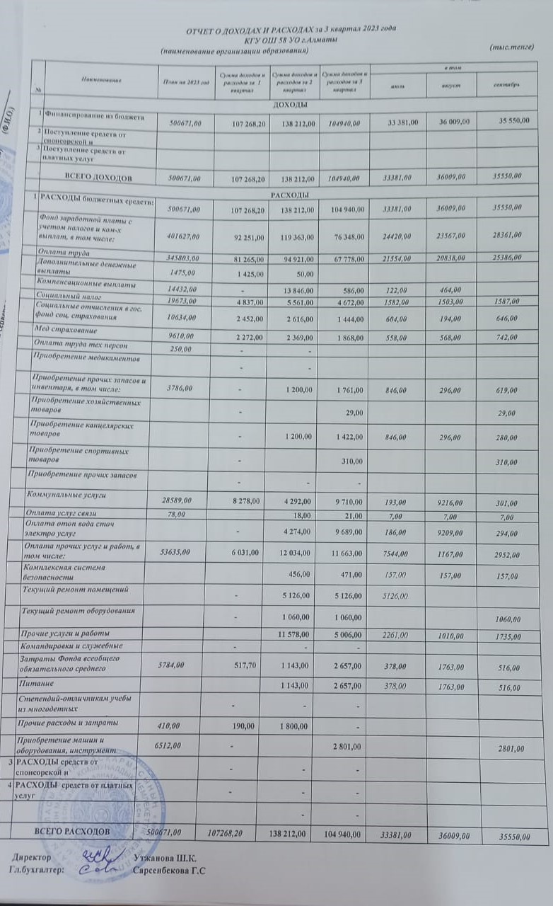 Кіріс және шығыс есебі, 3 квартал 2023 жыл