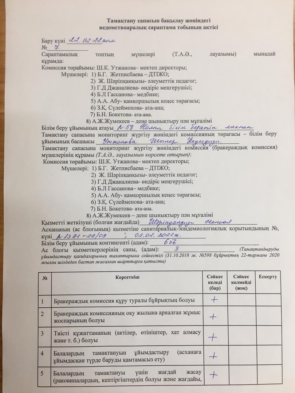 Ақпан айының бракераждық актісі