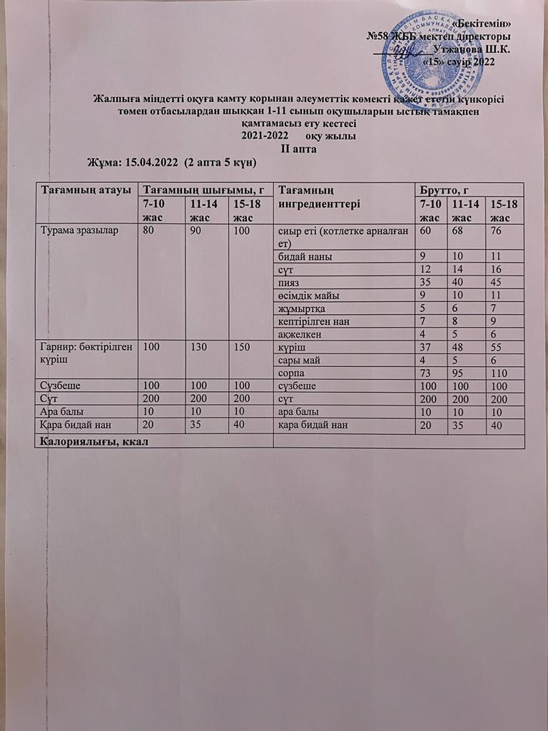 4 апталық ас мәзірі