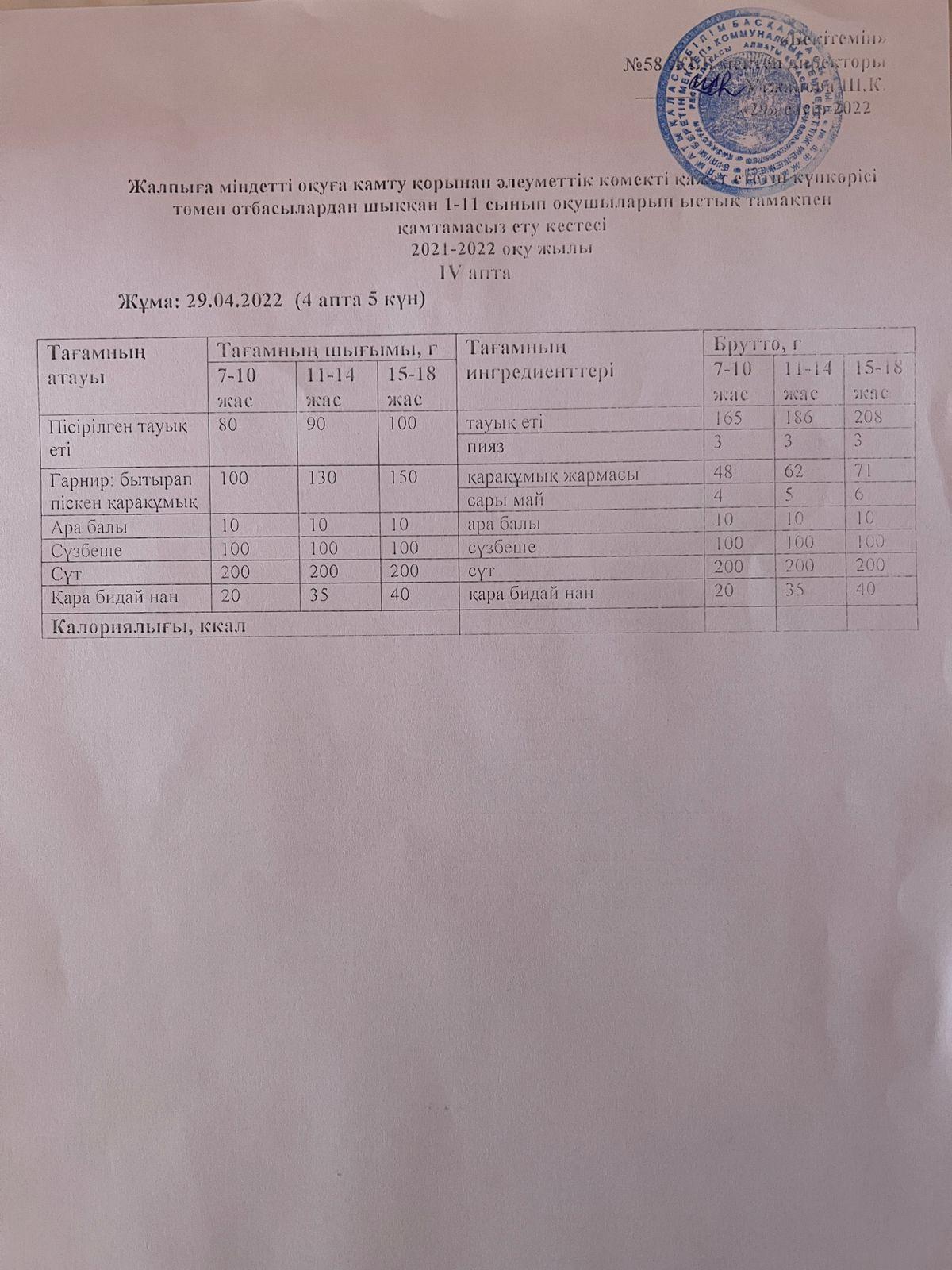 КГУ «Общеобразовательная школа №58» Управления образования г.Алматы