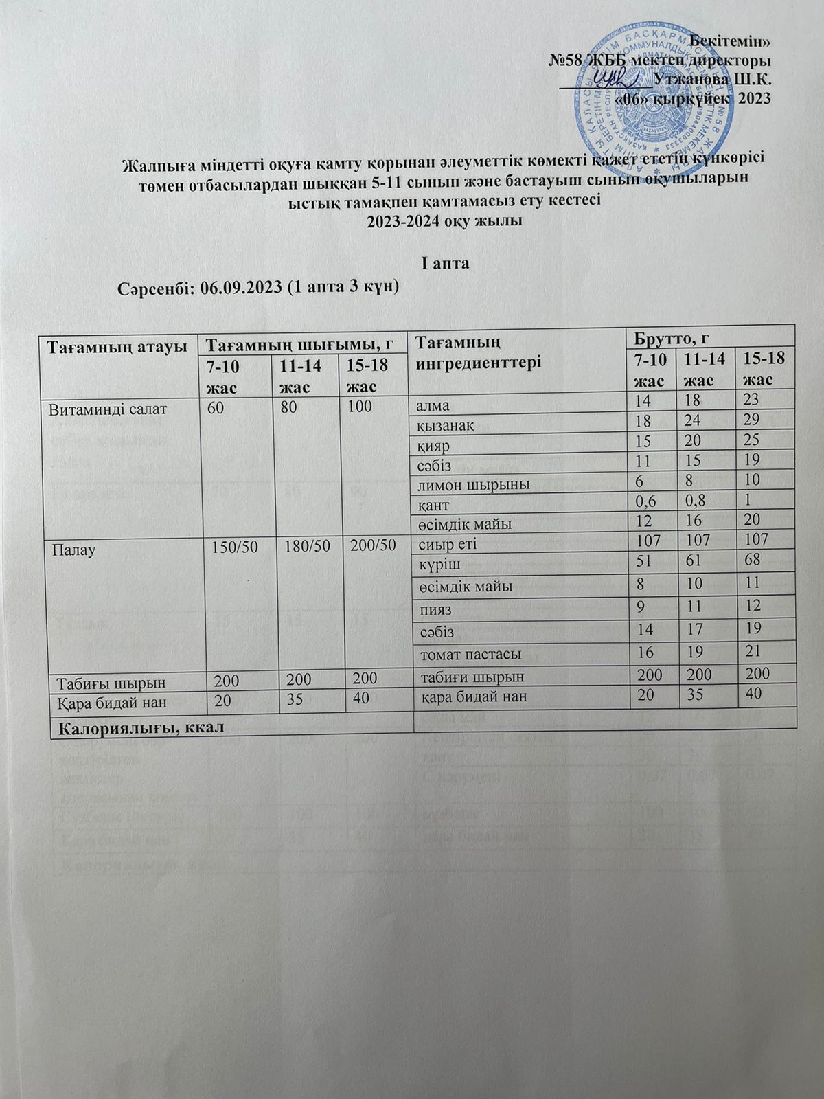 Ас мәзірі 06.09.2023 жыл
