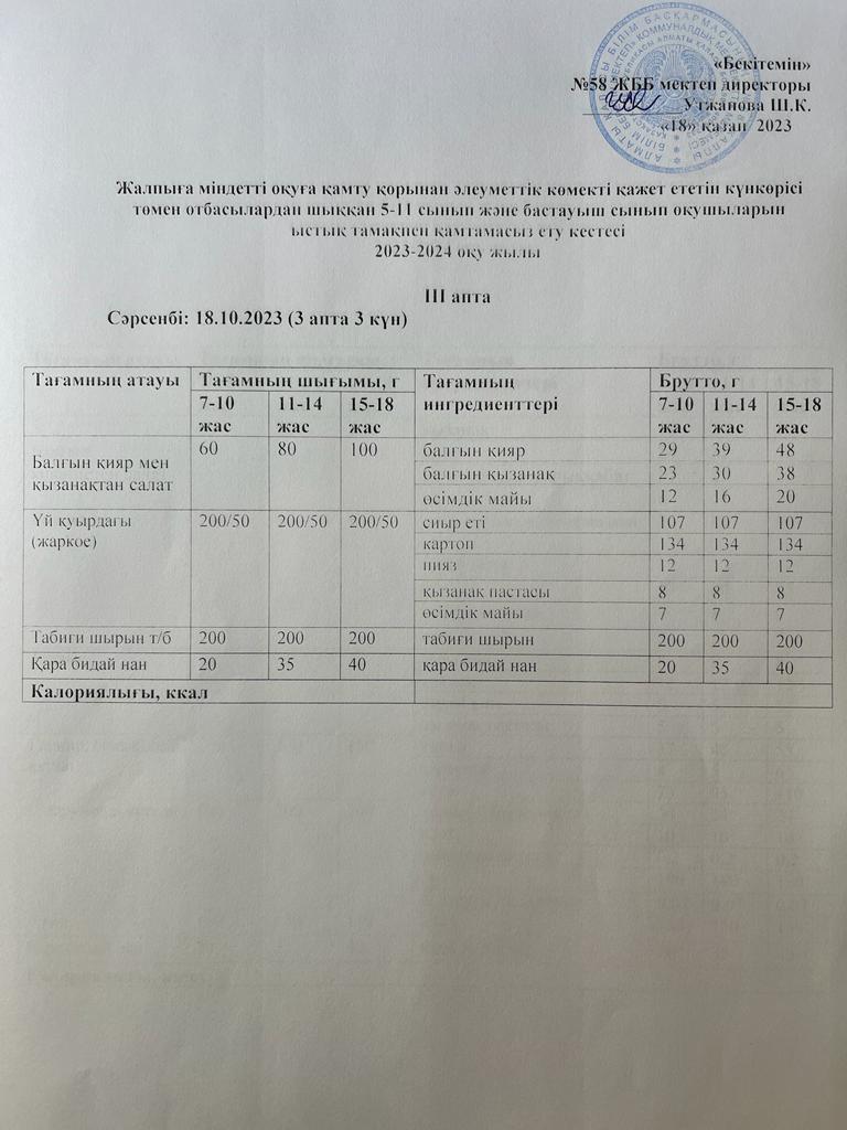 Ас мәзірі 18.10.2023 жыл