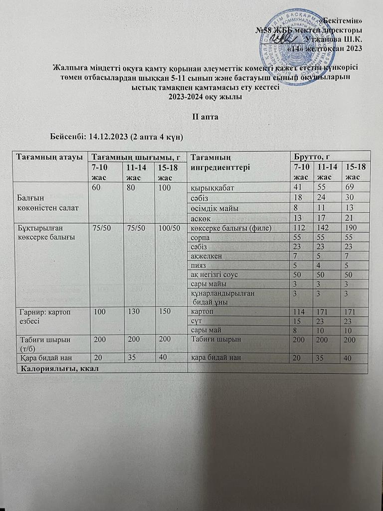 Ас мәзірі 14.12.2023 жыл
