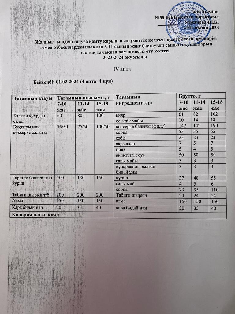 Ас мәзірі 01.02.2024 жыл
