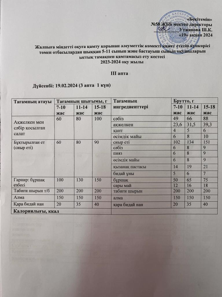 Ас мәзірі 19.02.2024 жыл