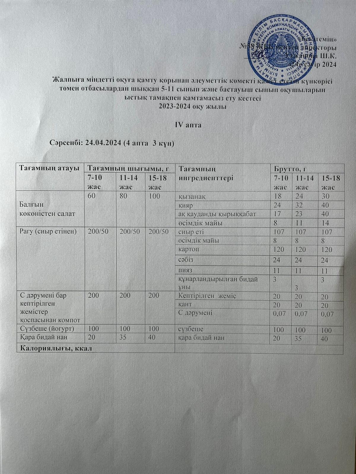 Ас мәзірі 24.04.2024 жыл