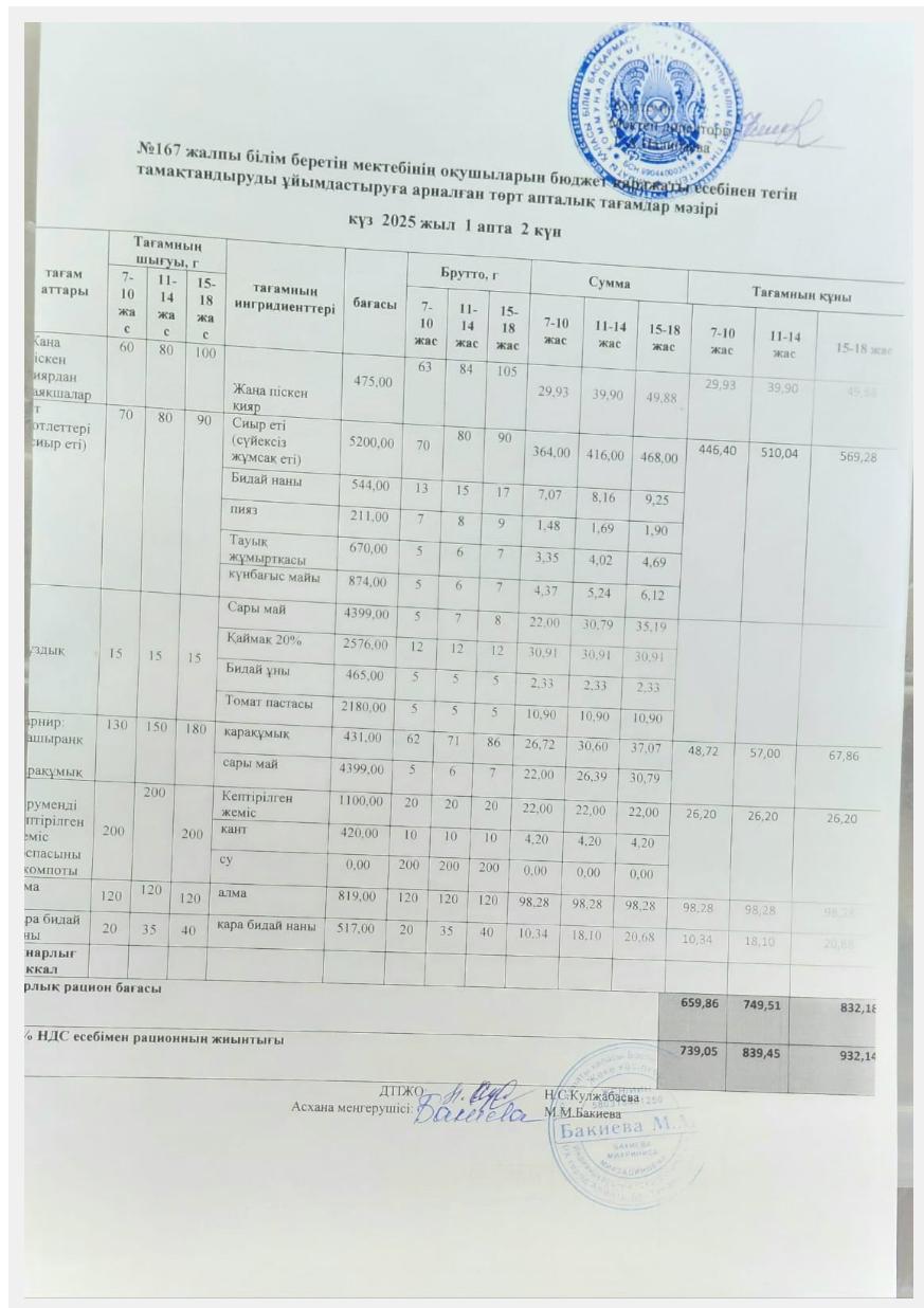 Ас мәзірі 02.09.2025ж/Меню 02.09.2025г