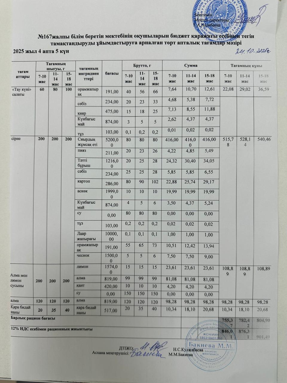 Ас мәзірі 21.04.2025ж/Меню 21.04.2025г