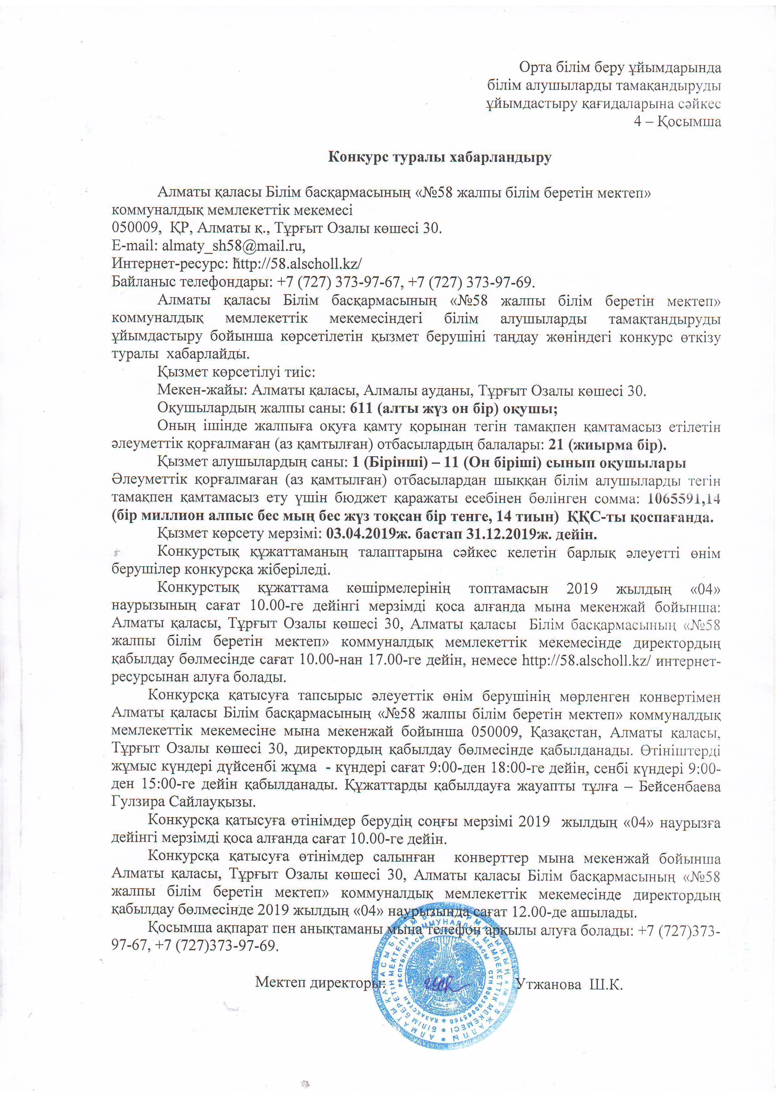 12 февраль 2019 0 1 2 3 4 5 Конкурс туралы хабарландыру. Конкурстық құжаттар. kd-kaz-konvertirovan.pdf [2,4 Mb] (cкачиваний: 17) Посмотреть онлайн файл: kd-kaz-konvertirovan.pdf