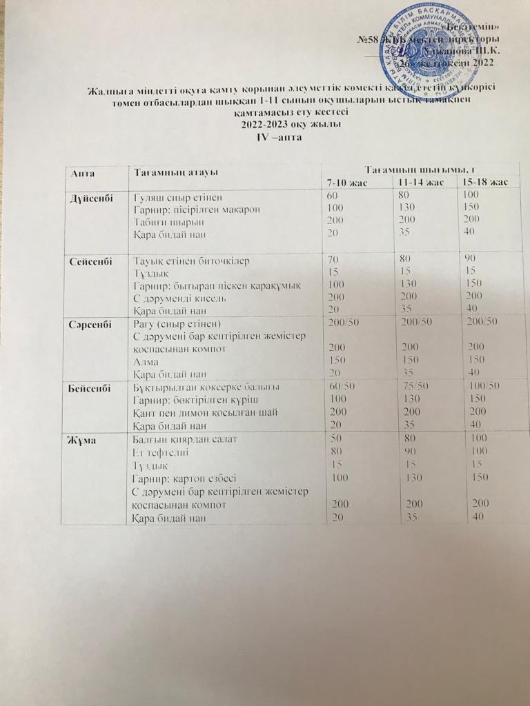 КГУ «Общеобразовательная школа №58» Управления образования г.Алматы