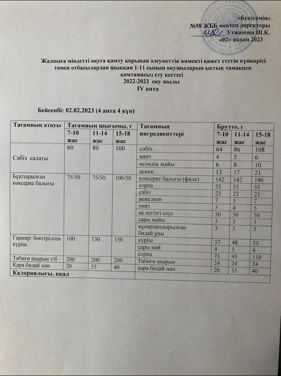 Ас мәзірі 02.02.2023 жыл
