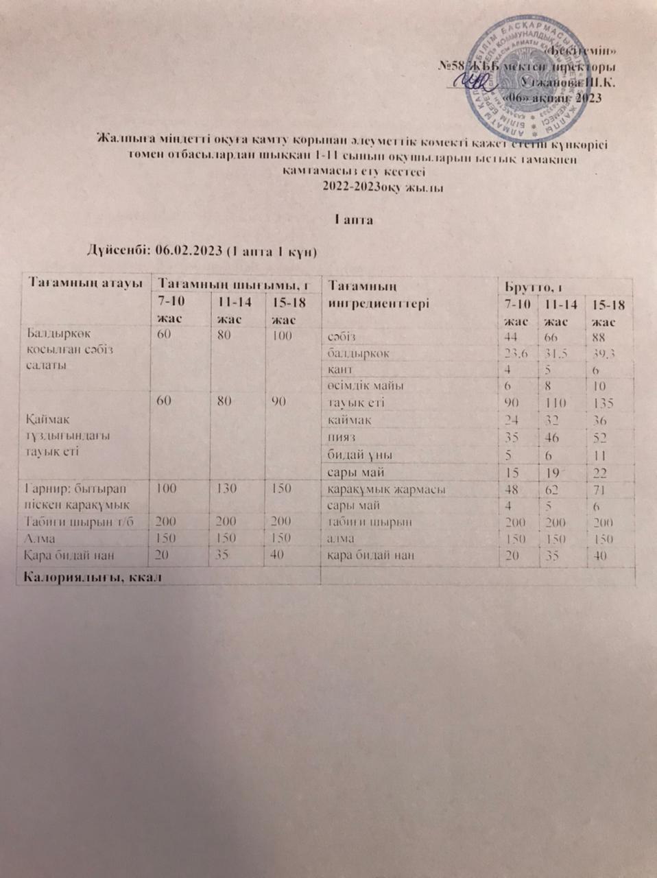 Ас мәзірі 06.02.2023 жыл